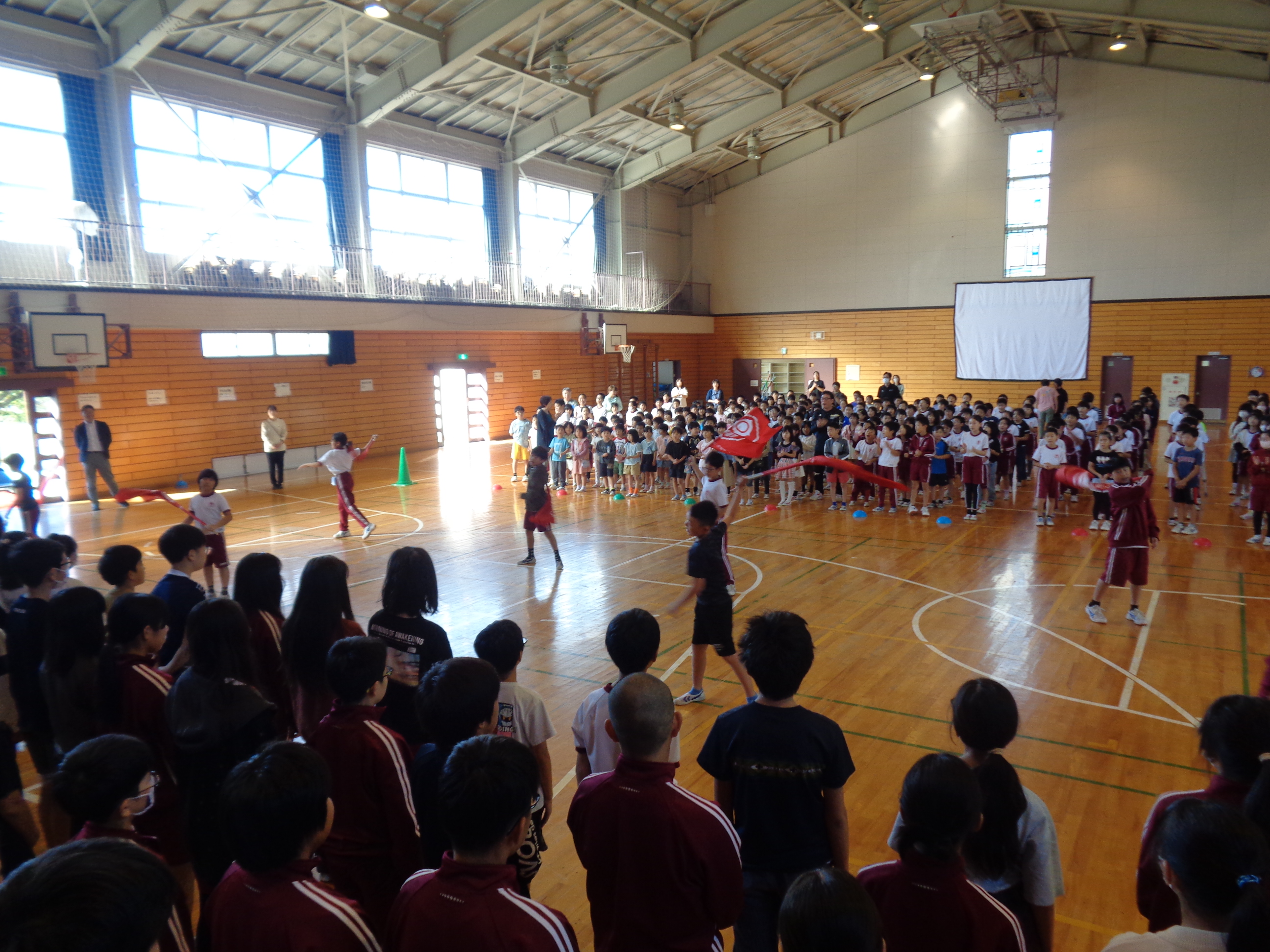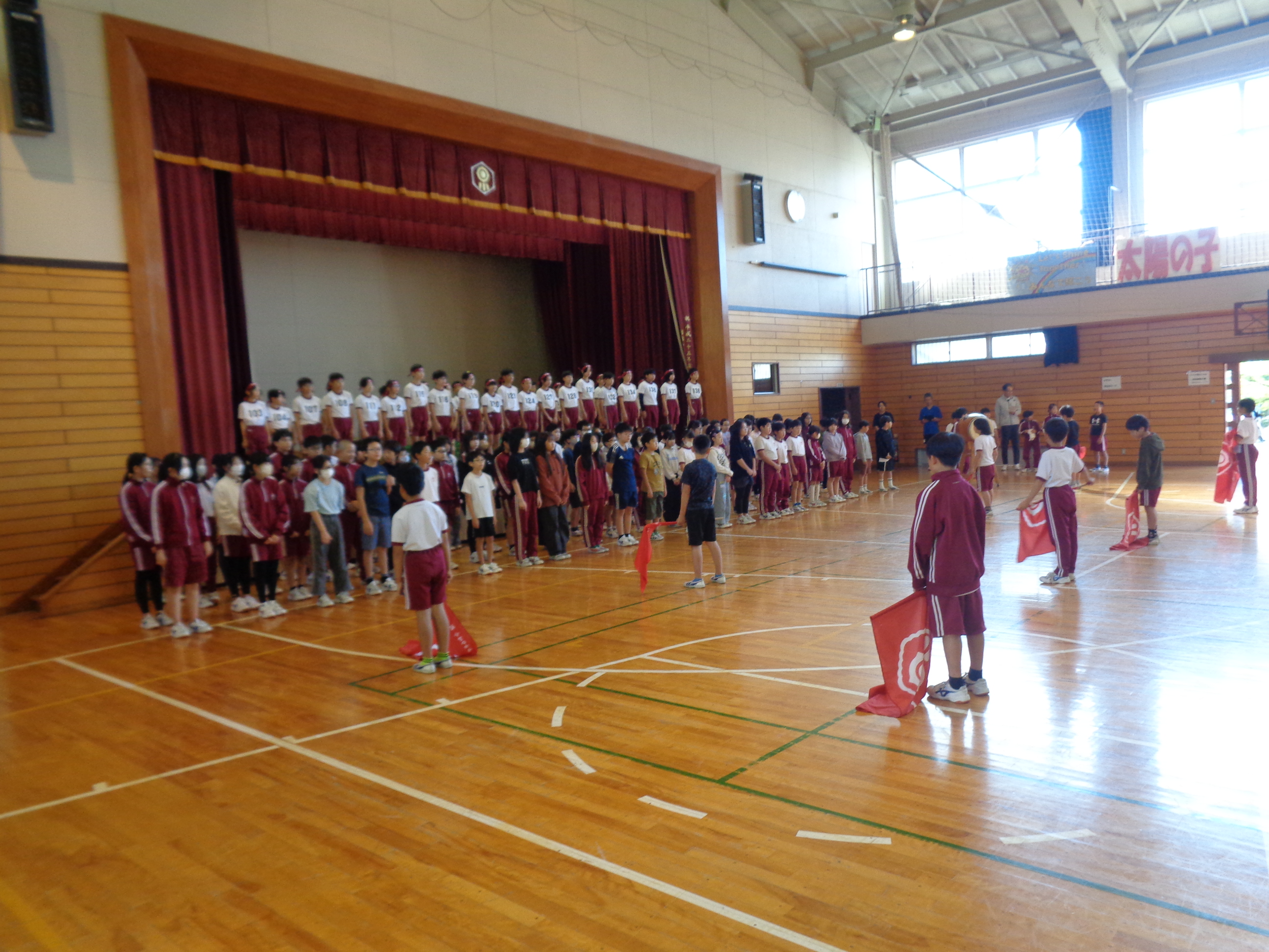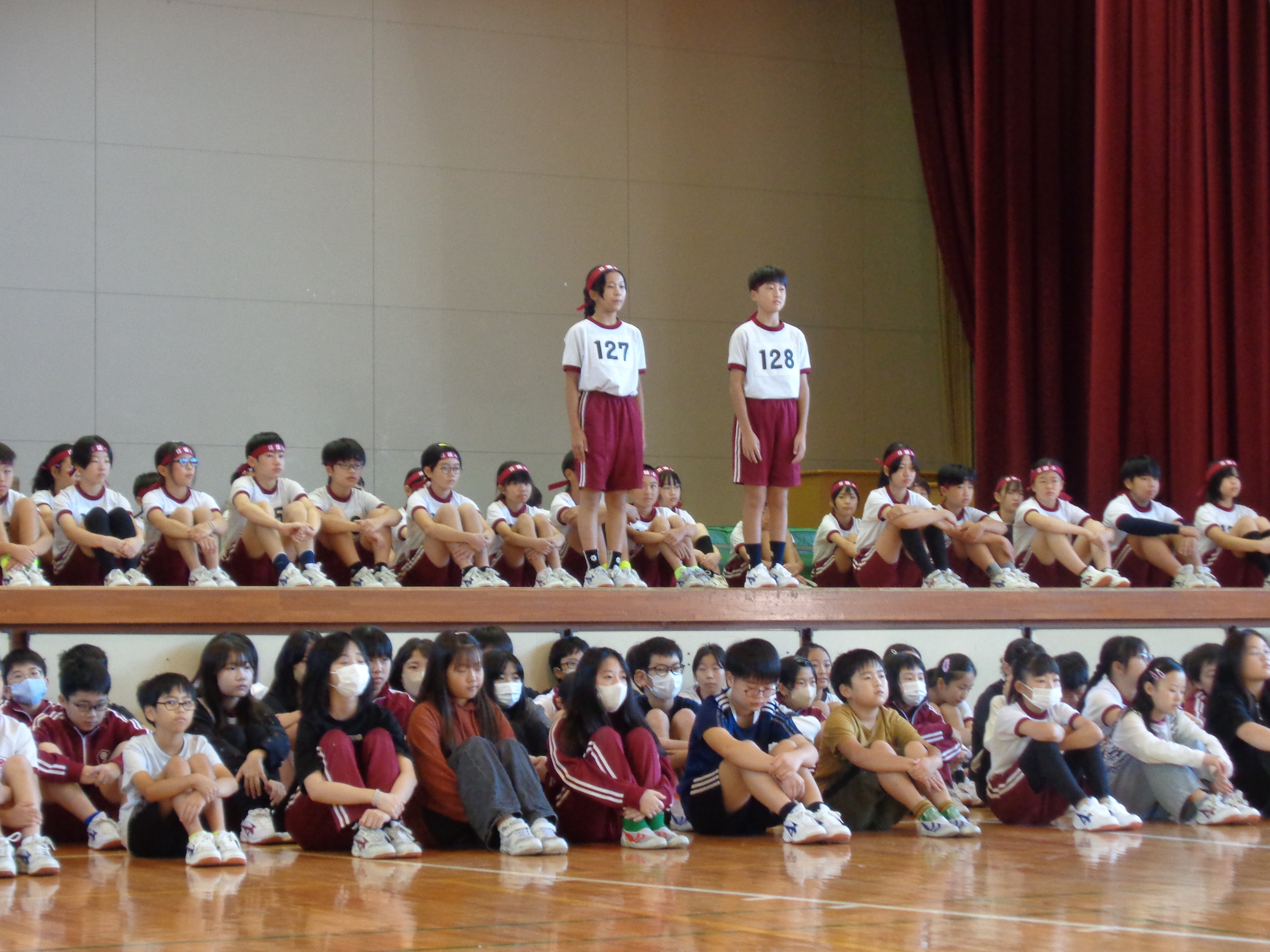 9月24日(水)、陸上記録会壮行会が行われました。暑さに負けず,毎日の練習(種目・応援)に一生懸命に取り組んできた5・6年生です。在校生の元気な応援を受けて、さらに本番への決意を大きくしたことでしょう。